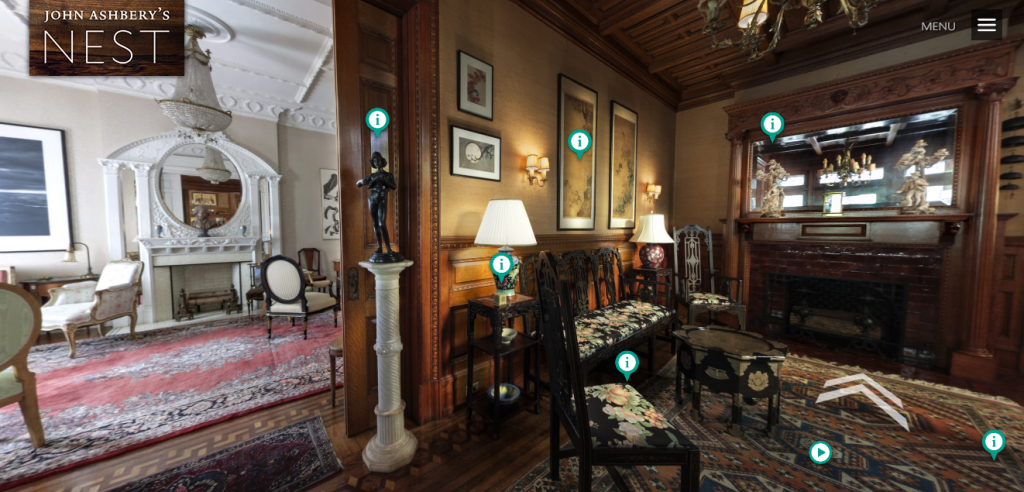 American poet John Ashbery was renowned for his writing, art, and critiques. Lesser known was his incredible collection of antiques, and carefully curated home of furniture, artwork, and other decorations. Developed by the Yale Digital Humanities Department, “John Ashbery’s Nest” is a virtual, interactive tour of Ashbery’s incredible environment conducive to artistic creations of all kinds. Throughout the tour, we are able to learn about the significance of various objects and pieces in the home narrated to viewers by Ashbery himself.