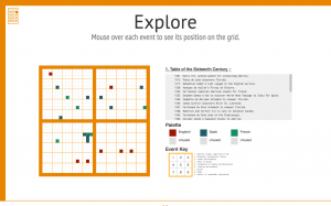 The layout of this project was very clever, utilizing Peabody’s idea of a colorful grid-like representation as the layout for the site. It was extremely easy to navigate and almost helped for a better understanding of the topic at hand. Some big highlights of this project were the interactive sections, which aided understanding of the topic and ultimately allowed for complete immersion with the digitization of historical events the way Peacock envisioned it. The “Play” section was especially nice because you could make your own Historical Visualization Grid with whichever events you want. In my opinion, this formatting was efficient and fun for the viewer. Overall, the project was basic enough to utilize, while giving a significant amount of information.
