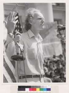 Based on the material presented, I could easily present a narrative of passion, struggle, political activism and progress. Pictured within the collection is Mario Savio, a Berkley graduate student who led the fight against political oppression based on campus directed at the students. The photos narrate the importance of the Free Speech Movement with massive amounts of media members front an center for Savio’s speech.
