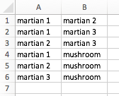 There characters were all connected in my opinion. I based this off of the fact that three out of the four characters in this short story were martians and the fourth was a mushroom. They are all related because the martians are all martians, and because all of the characters conversed with each other. Therefore, my excel sheet looked something like this: