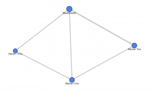 Since the majority of the short story is the dialogues between the three martians and the mushroom, I decided to use Google Fusion Tables to track how many times one character spoke and see who the dialogue was directed to. Please click here for a link to the dataset and see the visualization below: