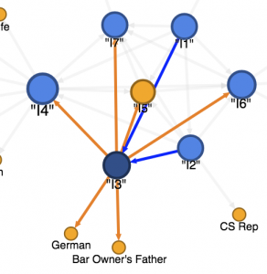 The main limitation of the network graph is that it doesn’t show the complexity of having a smaller network embedded in a bigger network (the “I” network,) as well as having sub-networks within an original network (every single “I” network.) Instead, I have to simplify the network by combining all networks into one graph and explain it one by one. It could improve if Google Fusion Table allows me to put two networks into different layers. In this case, I would be able to present different networks by adjusting their transparency.