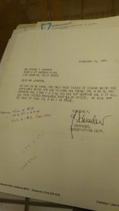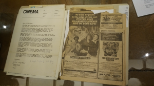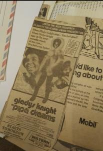 We were able to handle the physical artifacts in Box 53 of the George P. Johnson Collection. My groupmates and I looked at the items that were in the Negro Film Collection 1885-1977. We thought that we would handle many of the original documents but were surprised to find catalogs, handwritten notes, typed-catalogs and It contained detailed catalogs of Cinema magazines, catalogs of the publication of Avant Garde, images of various Cinema magazine volumes as well as letter correspondence between George P. Johnson and Cinema magazines. The catalog that he kept of the magazine issues included information on the price of the volume, who was on the cover, major articles written and special notes on any articles and images of African Americans in entertainment. He also included newspaper advertisements that featured African American actors, performers, entertainers and those in the entertainment industry. These documents were meant for the public and captured not just moments, but African American achievements. These were special collections of newsworthy accomplishments that also documented the African American experience in film and television. Below, I have included a few of the photos I took of the newspaper clippings, letters and other items we examined.