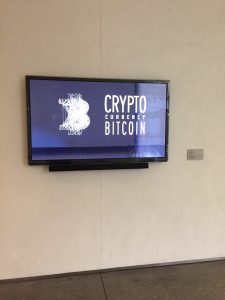Like several of my fellow classmates, I visited the Hammer Museum and observed an instillation by the artist Simon Denny. The instillation fills a small room on the courtyard level of the museum and outside there is a video screen that displays graphics and loudly describes applications of blockchain technology. I observed several museum visitors watching the video and noticed that most visitors only lingered for about thirty seconds before entering the gallery. Because the video is on a loop, and there is no way for the visitor to restart the video, there is always a sense that you are coming in halfway through the explanation. The voiceover of the video explains relatively complex technology, networks of information, and “digital flows of knowledge” so it is easy to get lost in the explanation and come away feeling confused (as I did the first time I viewed the instillation). Personally, I find that the lack of possibility of interaction with the video and booming voice-over frankly make the outside of the exhibit somewhat uninviting. Large panels of text explaining blockchain are also displayed in lightboxes outside of the gallery. I noticed very few people taking the time to read or examine these texts.