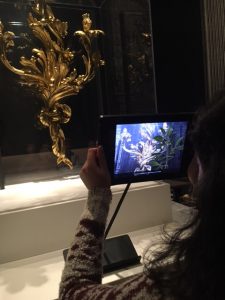 I also examined the exhibit myself. I definitely found that the iPad technology especially was really helpful for learning about these items in a more meaningful way. The iPad activities challenge you to find things about the item, for example “Can you find the maker’s mark on the item?”, which really allows the user to focus on specific and interesting details about the items that may have normally been overlooked. It also allows for extra information to be included with the item that would not fit in a normal wall text blurb. After spending time with this exhibit I really feel like I learned more, was more engaged with the items, and will remember the items better than I would have if they were exhibited in a more standard exhibit. The Getty definitely uses technology successfully in this exhibit.