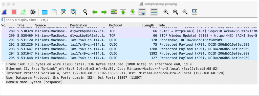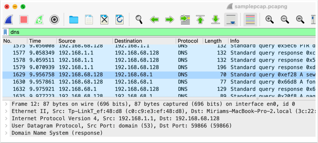 Now you’ll see only DNS requests.