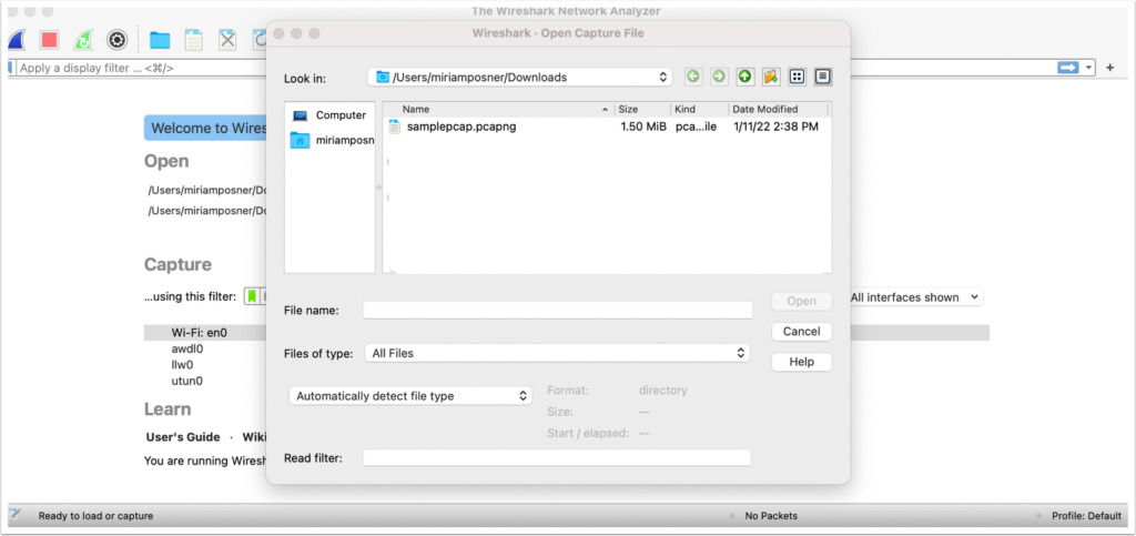 3. Open the sample PCAP file.