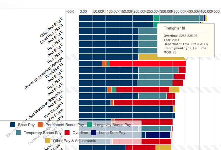 Additionally you can teach the annual earnings by each department. For example LA DWP is one of the most populated graphs and contains a large percentage of earnings by the Los Angeles county itself.