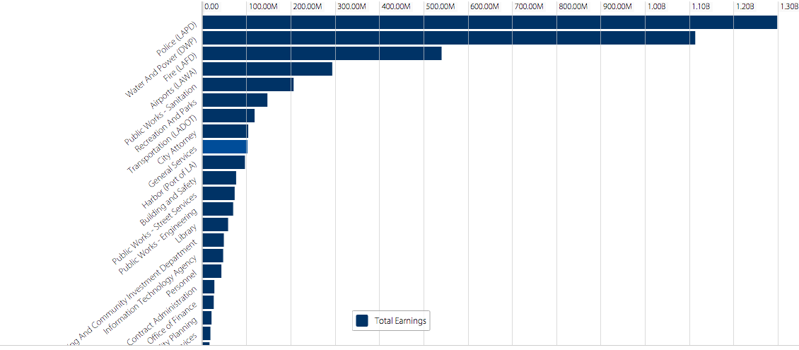 I actually believe that the City Departments will find this data most illuminating. This is because all of the departments can see how their own departments stack up to those they share taxpayer money with. For example, the Recreation and Parks department can see that they receive less than 25% total earnings when compared to the top two department earners (LAPD and LADWP). This may shed light on the employees to consider other city jobs that may pay more due to a higher yield of yearly funds. Although, this data does not show how the money is distributed. Nonetheless, this data would be crucial for employees of the city to see which departments Los Angeles is making a priority.