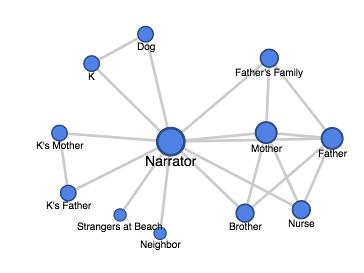 I decided to build a network graph of explicit character interactions. Because so many of these figures are friends and family with one another, a “who-knows-who” diagram would not be useful.